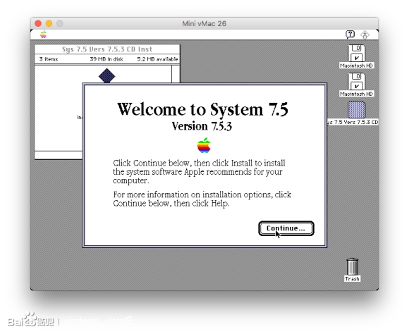 System 7.5貌似就是一堆DPI的加入,以及一些新PowerPC硬件的滋磁。不过这里我们仍然使用Mini vMac来模拟到最后